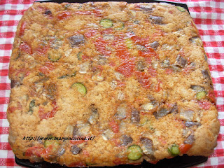 Sciogliere il lievito in una scodella con due bicchieri d’acqua ed un po’ di zucchero integrale di canna. Aggiungere la farina un po’ alla volta impastando fino ad ottenere un panetto omogeneo. Aggiungere un pizzico di sale, lasciar lievitare qualche ora. Tagliare pomodori e melanzane a cubetti, distribuirli su una teglia con cartaforno, aggiungere olio e sale ed infornare a 180° per 25 minuti. Scaldare un filo d’olio in padella con un po’ di scalogno tagliato fine, aggiungere le zucchine affettate sottilmente e farle cuocere per 10 minuti circa, mescolando di tanto in tanto. Aggiungere un pizzico di sale ed il basilico e raccogliere le verdure in una scodella capiente, versarvi l’impasto e mescolare facendo distribuire delicatamente le verdure in tutto l’impasto. Versarlo in una teglia con i bordi alti coperta con cartaforno e livellarla. Lasciar riprendere la lievitazione per una mezz’oretta. Infornare a 190° per 25 minuti.