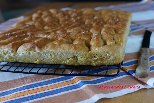 Passato il tempo stendete l’impasto nella teglia lasciandolo lievitare ancora 30 minuti, poi versate i 50ml di olio restante e premendo coi polpastrelli