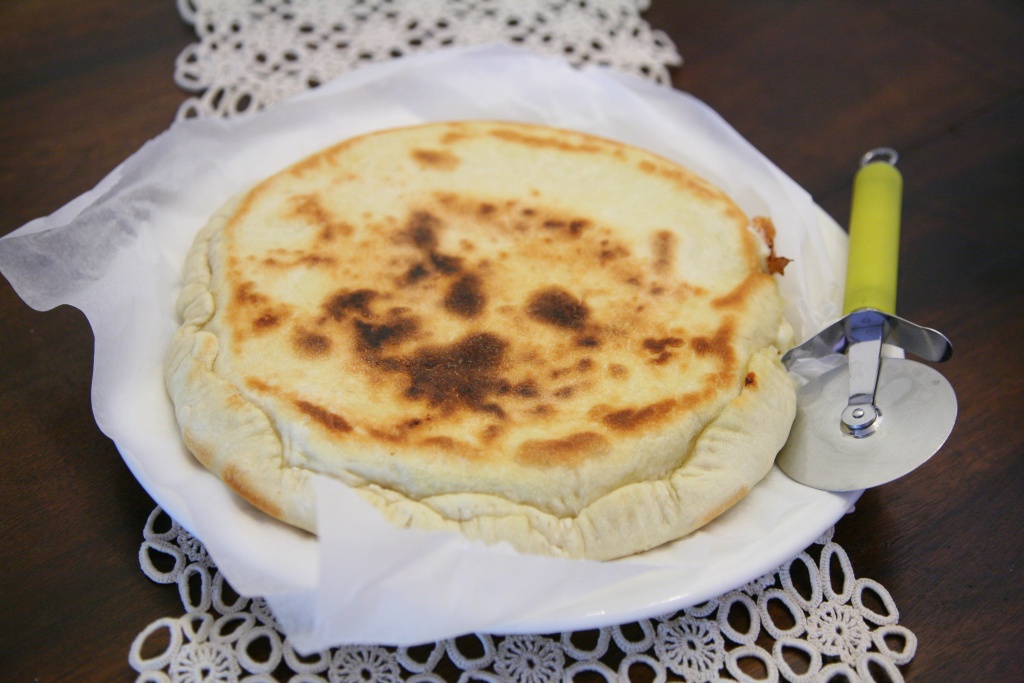 Ovviamente è molto diversa da una vera focaccia fatta lievitare, cotta al forno e succulenta grazie alla presenza di olio, ma vi assicuro che ne vale la pena.