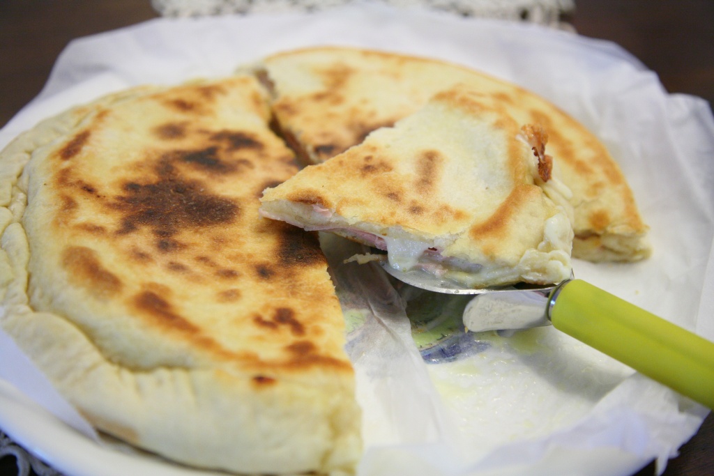Io l’ho farcita con Mortadella di bologna, scamorza affumicata e capperi tritati, ma è versatile, basta aprire il frigo e riempirla con quello che si ha a disposizione.