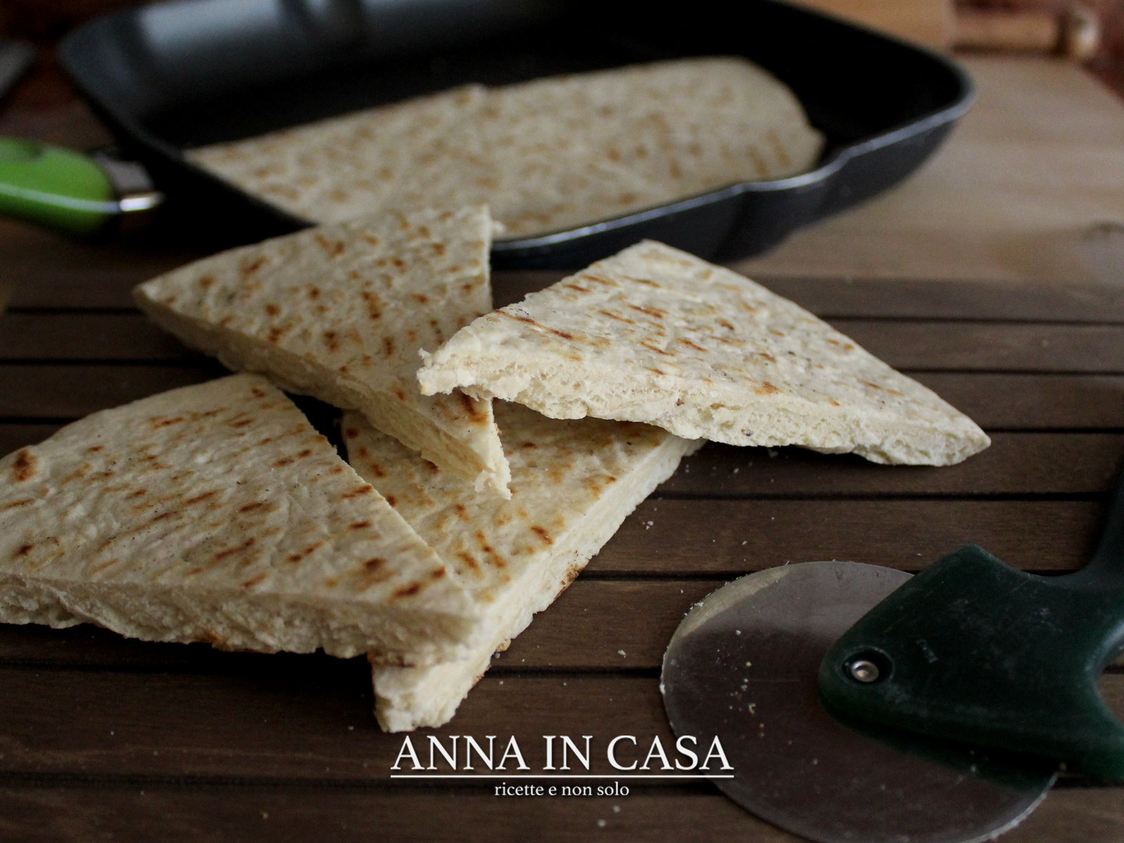 Scalare la bistecchiera o una padella antiaderente e intanto con il matterello stendere l’impasto fino ad avere una sfoglia di circa 1 cm.