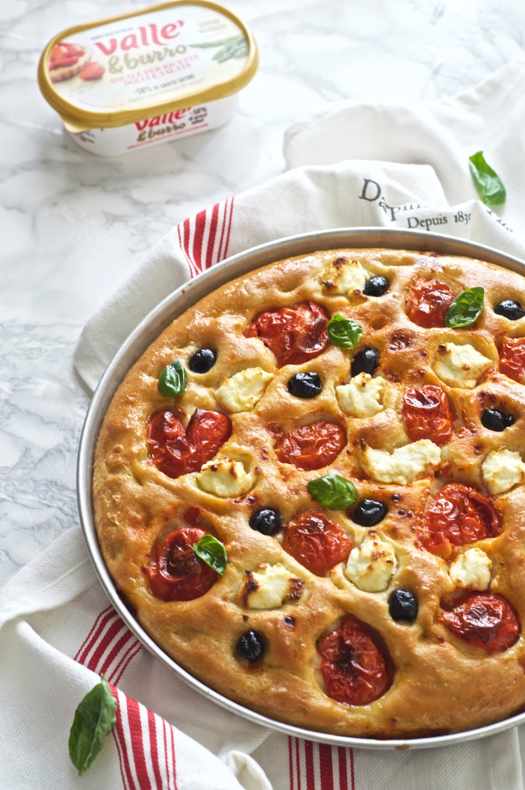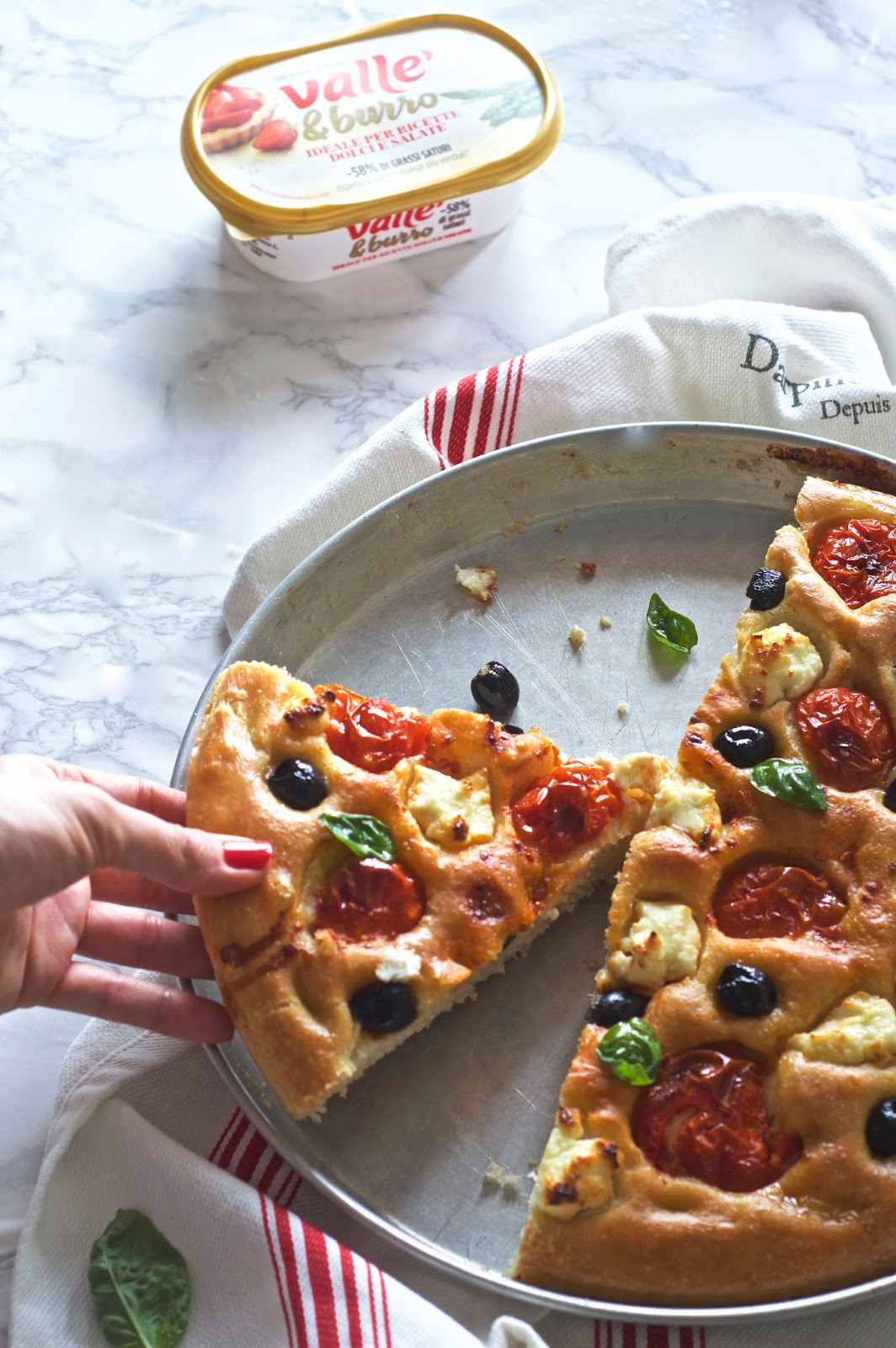 Una focaccia tutta mediterranea sia nel gusto che nei colori preparata in occasione del concorso Vallè per promuovere il nuovo prodotto Vallè & burro.