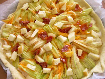 Sui fiori di zucca mettere i pomodori secchi spezzettati