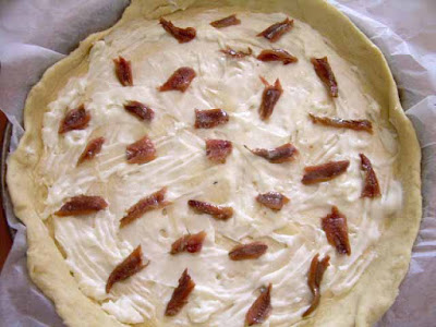 Continuo ad approfittare della bella stagione dei fiori di zucca, ed ecco quello che ho preparato l’altra sera, una focaccia dal sapore particolare dovuto dall’unione dello stracchino con le acciughe, ma assicuro sicuramente molto gustosa,si è creato
