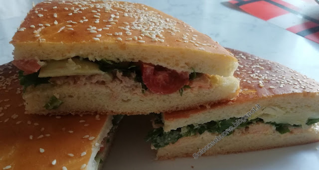 Non conoscevo la focaccia tramezzino fino a qualche giorno fa, quando la mia collega Giusy me l’ha fatta assaggiare. L’ho trovata molto buona ed ho deciso di prepararla farcendola a modo mio. E’ l’ideale anche per buffet, feste, aperitivi, cene sfiziose.