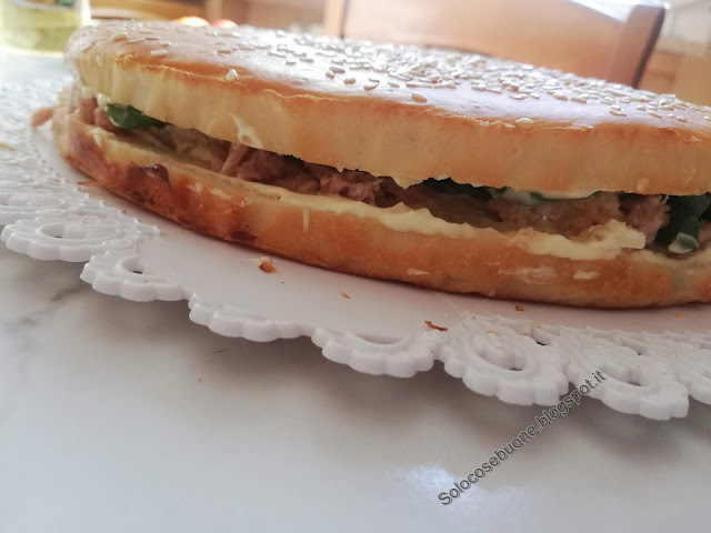 Durante la cottura si forma una dorata superficie ricca di semi di sesamo. Per la farcitura si puo’ dare libero sfogo alla fantasia!