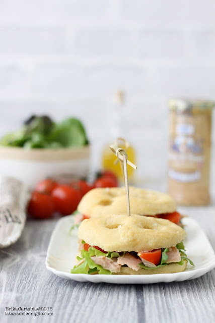Queste squisite e soffici focaccine si realizzano in pochi semplici passaggi. Grazie alla lenta lievitazione e alle patate, contenute nell’impasto, restano soffici e squisitamente leggere. Sono perfette per essere farcite con i più pregiati filetti di tonno Asdomar, insalata freschissima e pomodorini. Per un tocco in più non dimenticatevi del patè di olive. Perfette per un pic-nic, una gita fuori porta o per una sfiziosa pausa pranzo in tutta leggerezza.