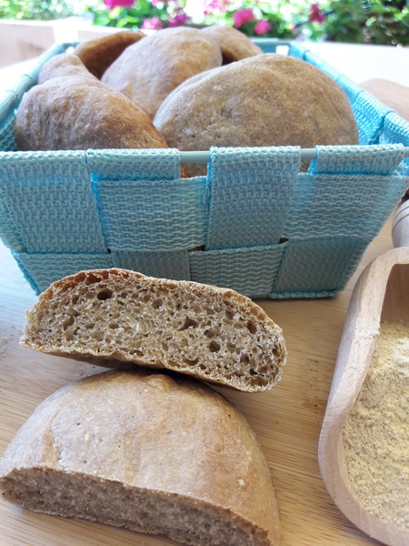 Trovo che queste semplicissime focaccine sono ottime spalmate di formaggio fresco e farcite con pomodori, melanzane grigliate o salumi a piacere.