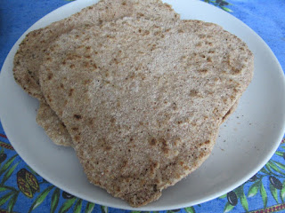 Impastare tutti gli ingredienti, dividere in 4 palline, stenderle con un matterello e cuocere su una piastra antiaderente senza aggiungere olio per qualche minuto per lato. Farcire a piacere, io le ho preparate con cime di rapa ripassate in padella ed hummus rosa.