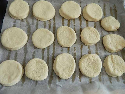 e man mano sistemare i dischi sulla piastra del forno foderata con la carta, continuare ad impastare gli avanzi fino a finire l’impasto.