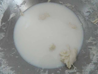 aggiungere il latte e il miele, sciogliere l’esubero servendosi della frusta a foglia.