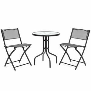 Details About 3pcs Bistro Dining Set Glass Top Table 2 Folding Chairs Indoor Outdoor Furniture