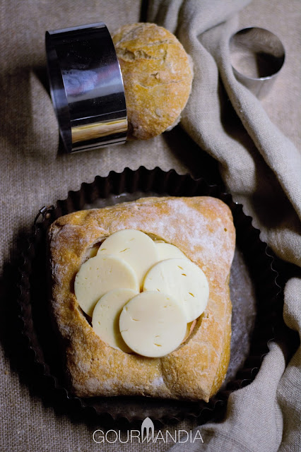Prepara il broccolo sbollentandolo per 5 minuti in acqua salata; pulisci sedano, carote e finocchi e lasciarli immersi in acqua, scolandoli solo al momento di portare la raclette in tavola. Scava la parte centrale dei pani aiutandoti con un coppapasta e un coltello. Taglia il pane tolto a bastoncini e tienilo da parte. Affetta il formaggio e riempi con esso la cavità dei pani, avvolgili nella carta argentata e poni in forno statico a 200 °C per 200 minuti circa. Verifica che il formaggio sia fuso, quindi rimuovi la carta argentata, aggiungi nella teglia i pezzetti di pane messi da parte e lascia ancora in forno per 5-10 minuti, affinché il pane sia ben dorato e il formaggio del tutto sciolto. Metti immediatamente le ciabattine a centro tavola con le crudité, le verdure e i sottaceti.