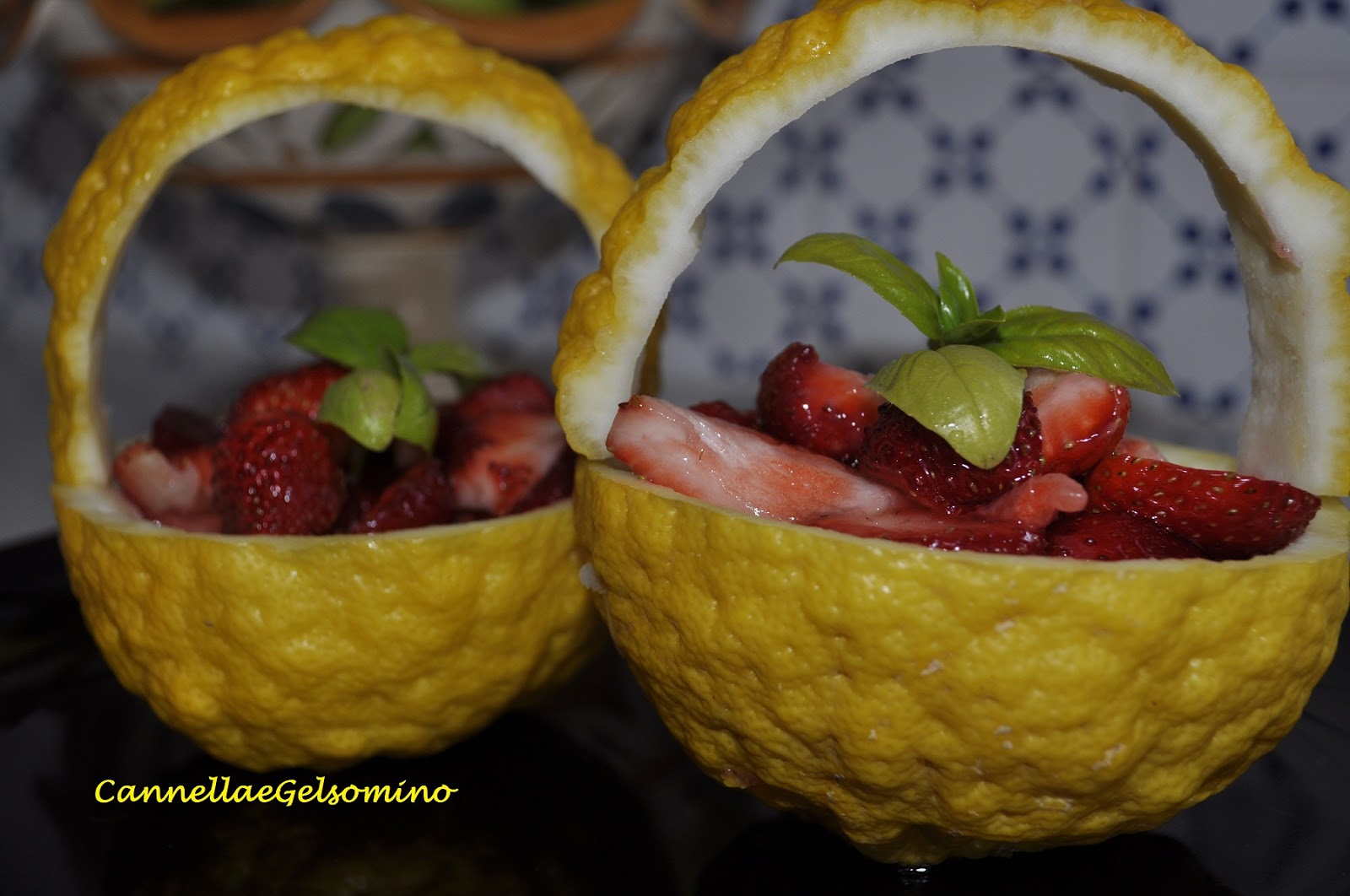 Vi ho già parlato del cedro, “pirettu” in dialetto ibleo: dato che il mio albero è particolarmente generoso, oggi lo voglio utilizzare come contenitore aromatico per le mie fragole. Le fragole biologiche sono buone al naturale, non hanno bisogno di condimenti particolari per la loro dolcezza. Le ho semplicemente lavate, tagliate, ho aggiunto un cucchiaio di zucchero di canna e le ho lasciate qualche minuto a rilasciare il loro fantastico succo. Le ho sistemate nei cestini di cedro ottenuti semplicemente svuotando i frutti e realizzando i manici con una fetta di scorza “appuntata” con degli stecchini. Un aroma e un profumo particolare sarà conferito alle fragole anche dal basilico appena colto!