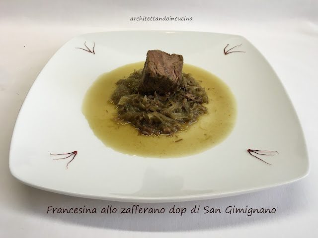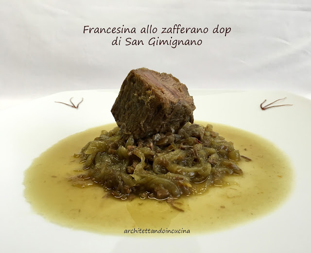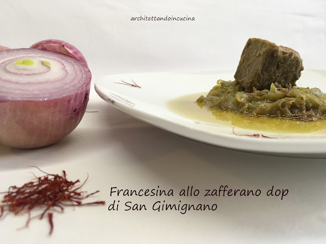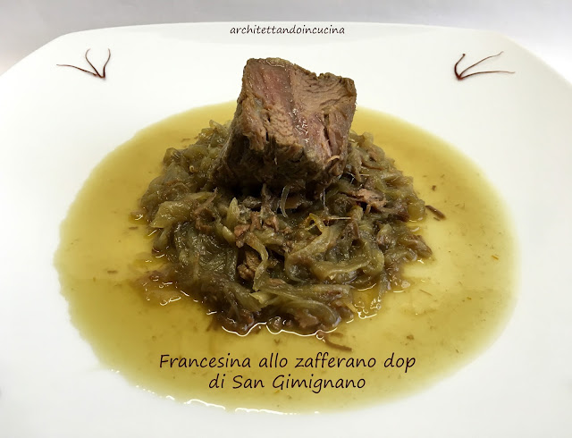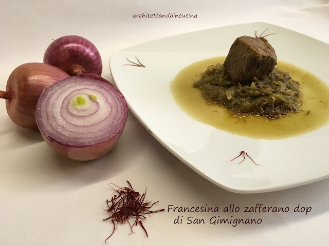 A qualunque delle ipotesi, si voglia dar credito, a Firenze, questo piatto ha avuto un gran successo. Io lo cucino spesso e a casa mia è talmente gettonato che non è mai un piatto di riciclo, ma realizzato appositamente, che viene ancora più buono. Infatti, solitamente è un modo per utilizzare la carne con cui è stato fatto il brodo. Ma cucinare un bollito straordinario e un ottimo brodo insieme, non è possibile. Quindi in questo caso privilegiamo il bollito, inserendo la carne quando l’acqua bolle. I pori della stessa si chiuderanno velocemente a causa del calore e la carne manterrà i suoi succhi e sapori all’interno. Per il brodo invece la carne si inserisce a freddo in modo che possa rilasciare nel liquido i suoi succhi. Ed è qui la grande differenza che passa tra una francesina fatta appositamente ed una di riciclo. Il lesso rifatto con le cipolle come da tradizione toscana, lo trovate qui. In questo post invece una mia libera interpretazione con lo zafferano dop di San Gimignano: prodotto straordinario che si presta per ogni preparazione.