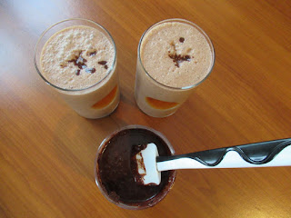 2 coppette di gelato artigianale vegan, 1/2 bicchiere di latte vegetale (riso o mandorle), 2 cucchiai di crema di nocciole.