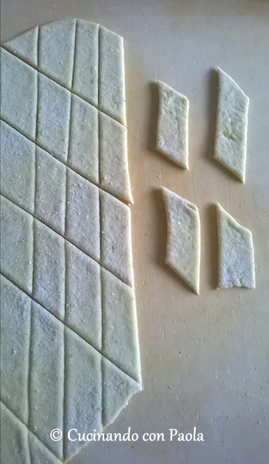Lasciate riposare l’impasto se tirate la sfoglia con il mattarello, oppure con la macchina se procedete subito. La sfoglia deve essere sottile. Con un taglia pasta ricavate delle strisce che andrete a friggere in olio di semi caldo. Scolate e fate asciugare su carta assorbente.
