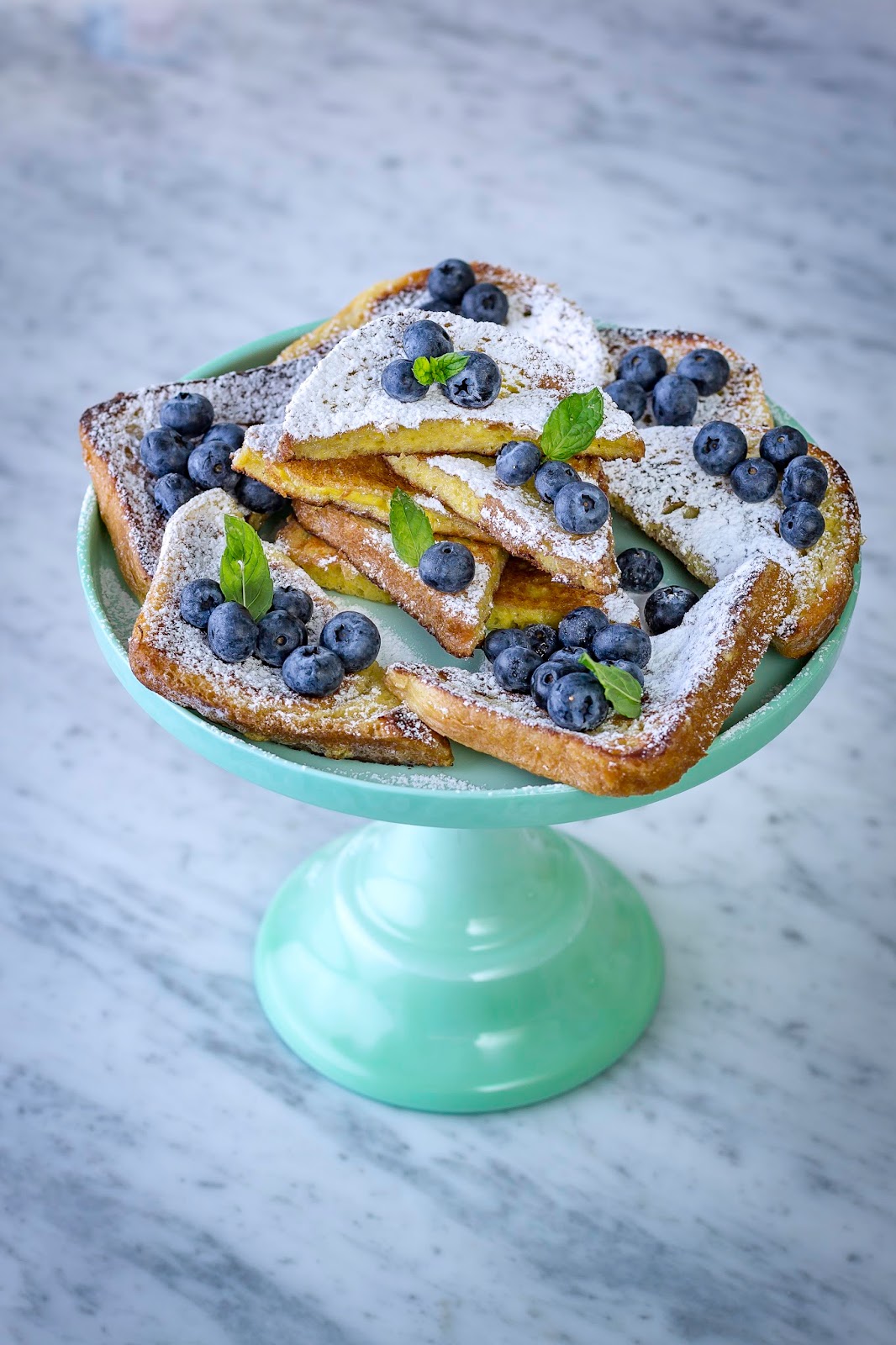 Servite spolverando con zucchero a velo ed accompagnate con mirtilli freschi e foglioline di meta fresca.