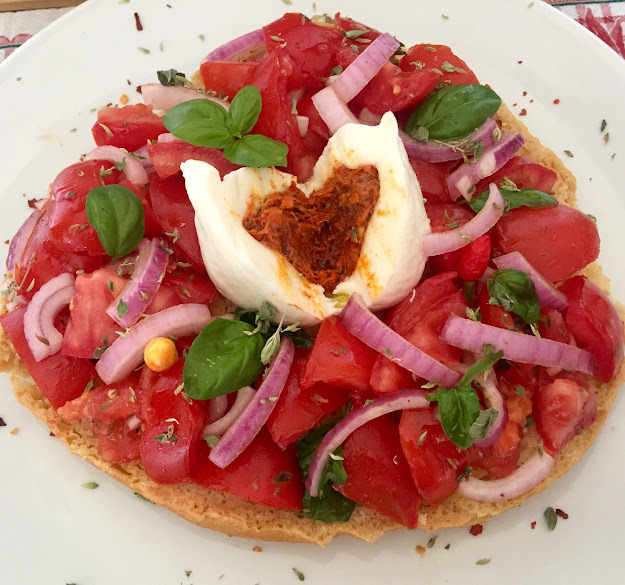 Per acconzarla c’è libertà assoluta, l’importante è che non manchino gli ingredienti essenziali: l’olio evo, l’origano, il basilico e il peperoncino. La mia fresa oggi è conzata con una buonissima insalata di pomodori alla calabrese e arricchita con una mozzarellina con il cuore di nduja.