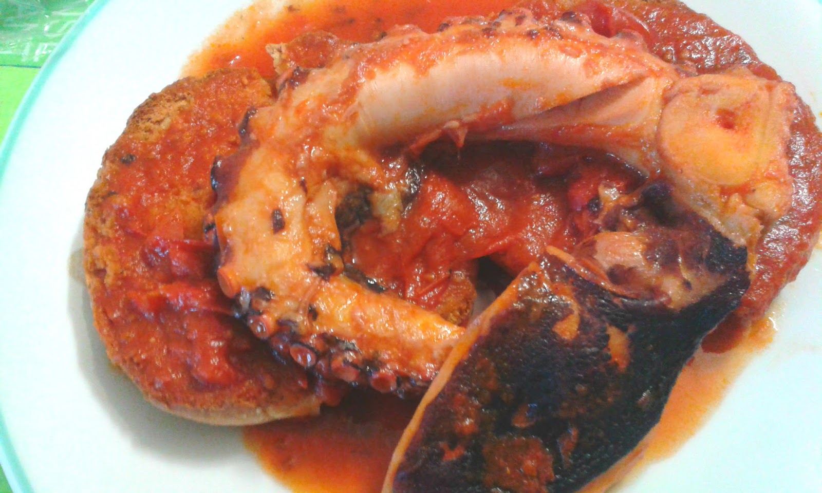 Tagliate i tentacoli e serviteli sulle freselle con abbondante sugo!!