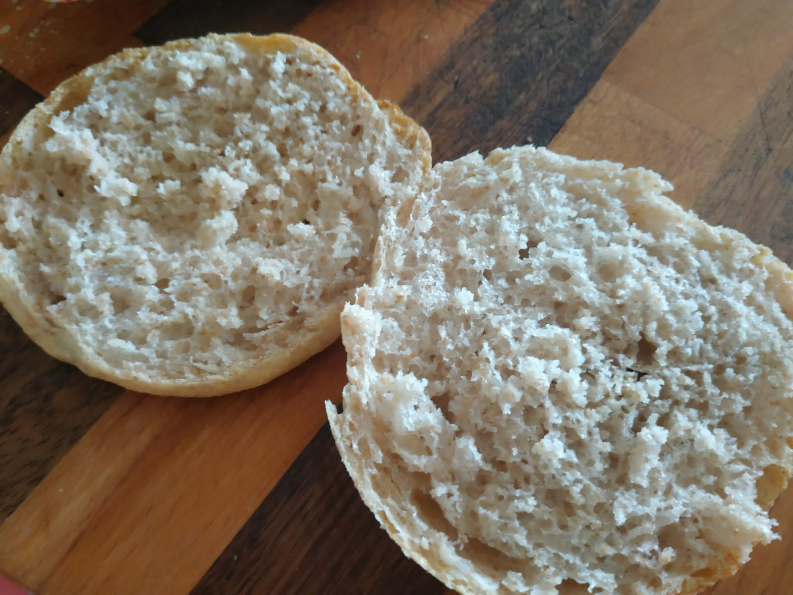 Ingredienti: 350 g di semola integrale di grano Russello, 150 g di farina 00 integrale, 350 g di acqua, 190 g di lievito madre attivo, 50 g di olio extravergine d’oliva, 8 g di sale.