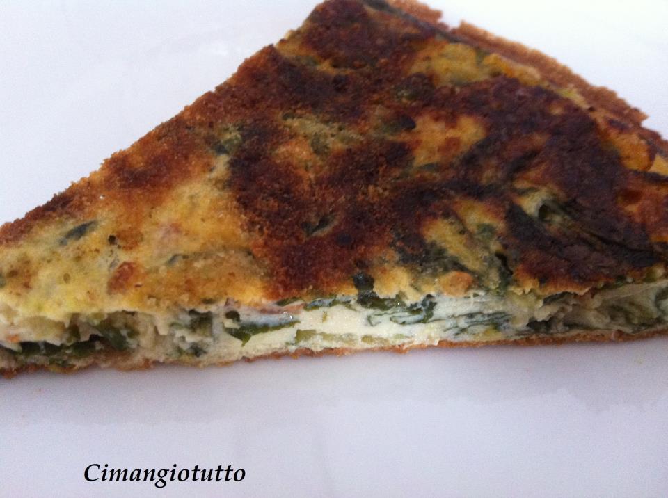 Ungere una padella con un po’ d’olio e spolverarla con il pangrattato, versarvi il composto. Far dorare da un lato e poi girarla in modo che risulti dorata da entrambi i lati.