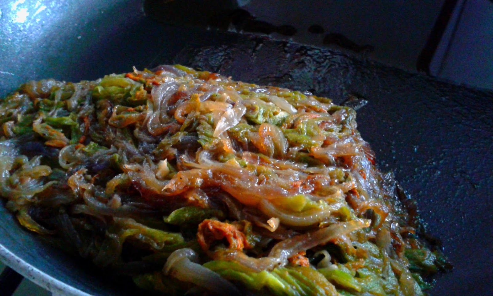 formaggio grattugiato,mescolo bene il tutto e verso nella padella (dove ho lasciato l’olio in eccesso)