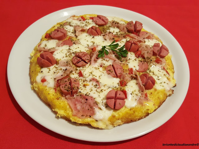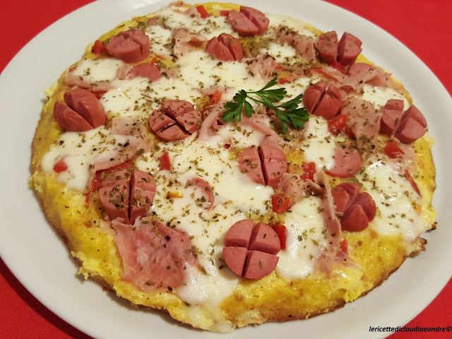 Questa non è una solita frittata, ma qualcosa più speciale, una frittata pizza, bella colorata e anche molto , molto buona, come mi hanno detto i miei. La ricetta l’avevo visto nel blog “Tutte per una in cucina“, dalla mia amica Giusi. Ho apportato qualche piccola modifica perché le uova erano molto grandi e ho aggiunto un pò di più di pangrattato e al posto del parmigiano ho messo il grana padano grattugiato. Giusi voglio ringraziarti per la ricetta e chiedo scusa perché mi sono permessa di cambiare leggermente anche il nome della ricetta, al posto di Uovo – Pizza, l’ho chiamata Frittata – Pizza. Buona per essere accompagnata con un’insalata mista !