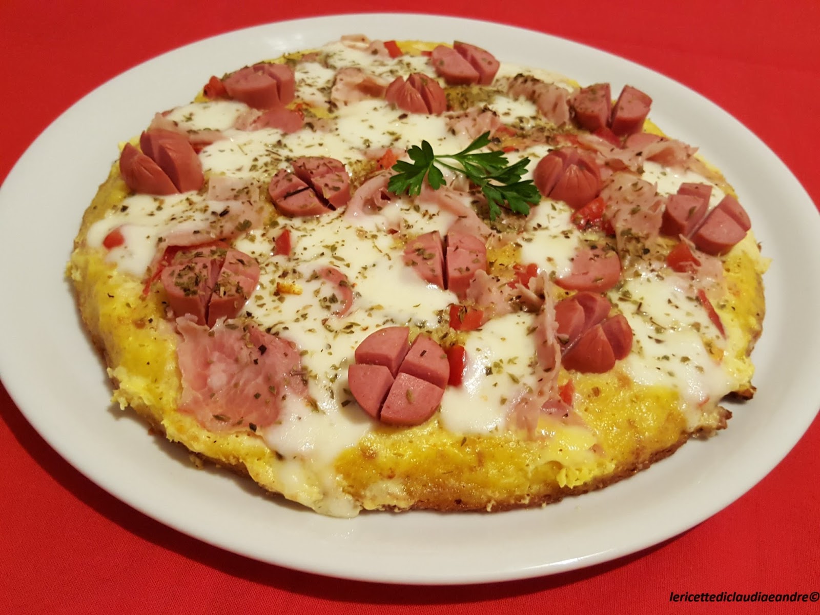 Questa non è una solita frittata, ma qualcosa più speciale, una frittata pizza, bella colorata e anche molto , molto buona, come mi hanno detto i miei. La ricetta l’avevo visto nel blog “Tutte per una in cucina“, dalla mia amica Giusi. Ho apportato qualche piccola modifica perché le uova erano molto grandi e ho aggiunto un pò di più di pangrattato e al posto del parmigiano ho messo il grana padano grattugiato. Giusi voglio ringraziarti per la ricetta e chiedo scusa perché mi sono permessa di cambiare leggermente anche il nome della ricetta, al posto di Uovo – Pizza, l’ho chiamata Frittata – Pizza. Buona per essere accompagnata con un’insalata mista !