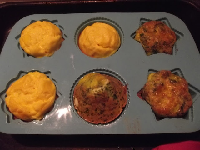 Per preparare le frittatine occorre sbattere le uova con la ricotta in una ciotola, aggiungete quindi il parmigiano , il sale e mescolate bene. Travasate il composto negli stampini da muffins (per me di silicone, quindi non necessita imburrarli) e infornate a 180 gradi per circa 20 minuti.