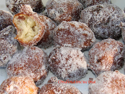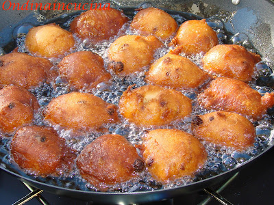 Queste le ho fatte la scorsa settimana in una bella giornata di sole che mi ha permesso di friggere in giardino, perchè a casa mia il fritto è bandito dalla cucina, non sopporto che rimanga l’odore penetrante per giorni e giorni, anche se si usa il miglior olio! Scusate la franchezza ma è così!