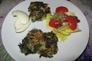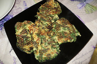 Affettare le patate a fiammifero e cuocerle in padella con un filo d’olio ed un po’ di cipolla. Aggiungere anche un po’ d’acqua e mescolare di tanto in tanto. Lessare gli spinaci, unirli alla farina di ceci precedentemente sciolta in un po’ d’acqua. Aggiungere le patate ed un pizzico di sale. Mescolare bene tutto. Cuocere a cucchiaiate su una piastra con un filo d’olio, schiacciandole un po’ per farle cuocere bene. Dopo 5 minuti circa girarle e farle cuocere dall’altro lato.