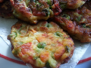 Buone e colorate, queste frittelle saranno apprezzate anche dai bambini che in genere sono restii a mangiare le verdure. Possono essere preparate in due tempi: il giorno prima si possono tagliare e sbollentare le verdure, il giorno dopo si completa l’impasto e si cuoce. Con questa dose vengono circa 18-20 frittelle, che potranno essere servite come antipasto o come contorno. Sono buone sia calde che tiepide o a temperatura ambiente e se per caso ne dovessero avanzare, il giorno dopo sono forse ancora più buone. Volendo dare un tocco esotico, possono essere aromatizzate con un cucchiaino di curry.