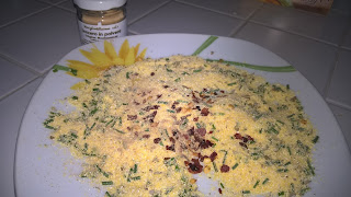 Preparo intanto una frittata sbattendo 3 uova con un cucchiaio di parmigiano, sale e prezzemolo tritato. Verso in una padella e in tanto che si rapprende lo strato inferiore, sistemo delle fettine di ricotta che mi era avanzata.