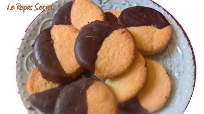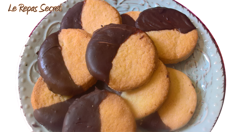 Tagliare a pezzi il cioccolato e fonderlo a bagnomaria con il burro, poi immergere i biscotti nel cioccolato fino a metà ed appoggiarli su fogli di carta da forno. Lasciarli raffreddare a temperatura ambiente e poi passarli anche in frigorifero per rassodare meglio il cioccolato.
