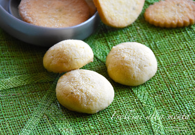 Oggi sbriciolo con le dita qualche grammo di quella menta che ho essiccato dopo l’estate, che cresce sempre così rigogliosa in giardino e la metto direttamente nell’impasto dei frollini.