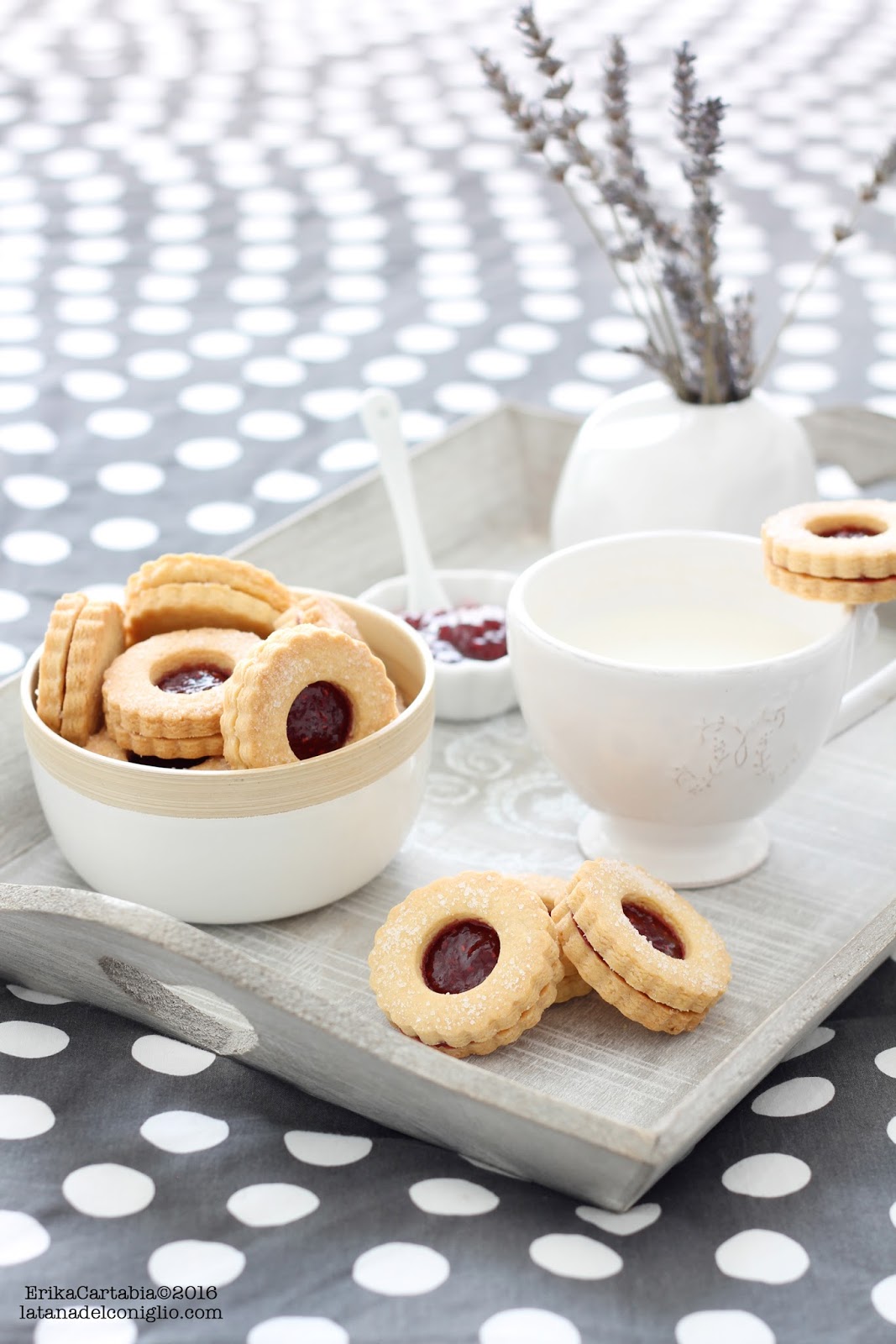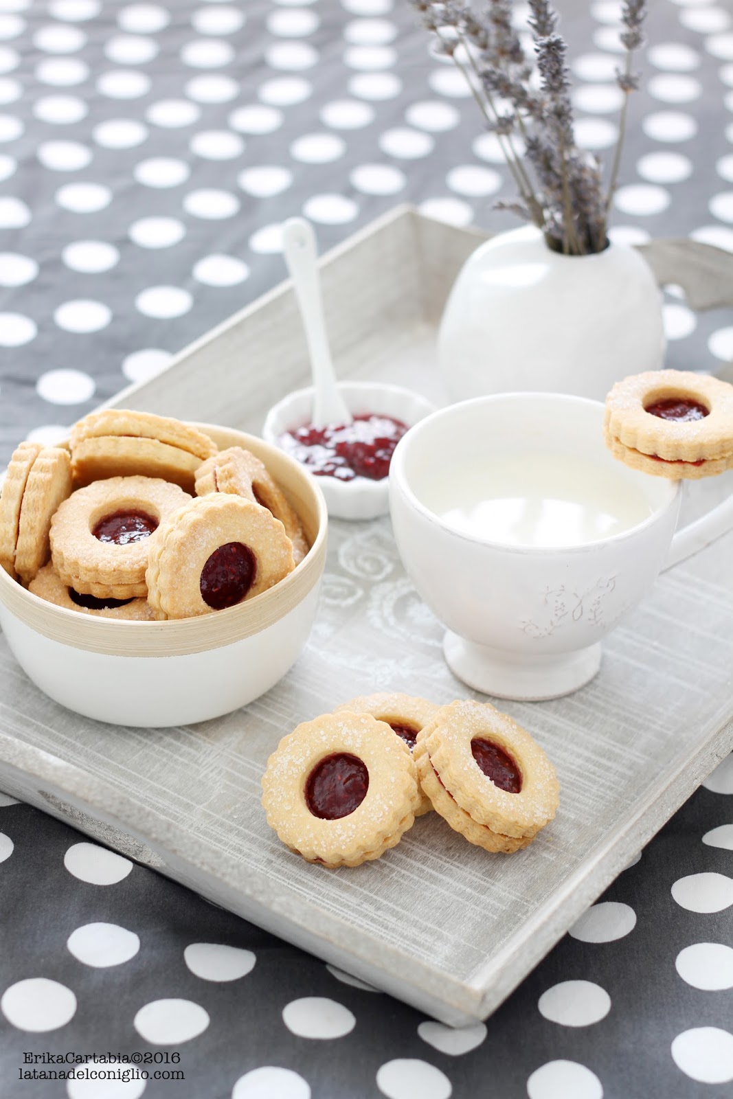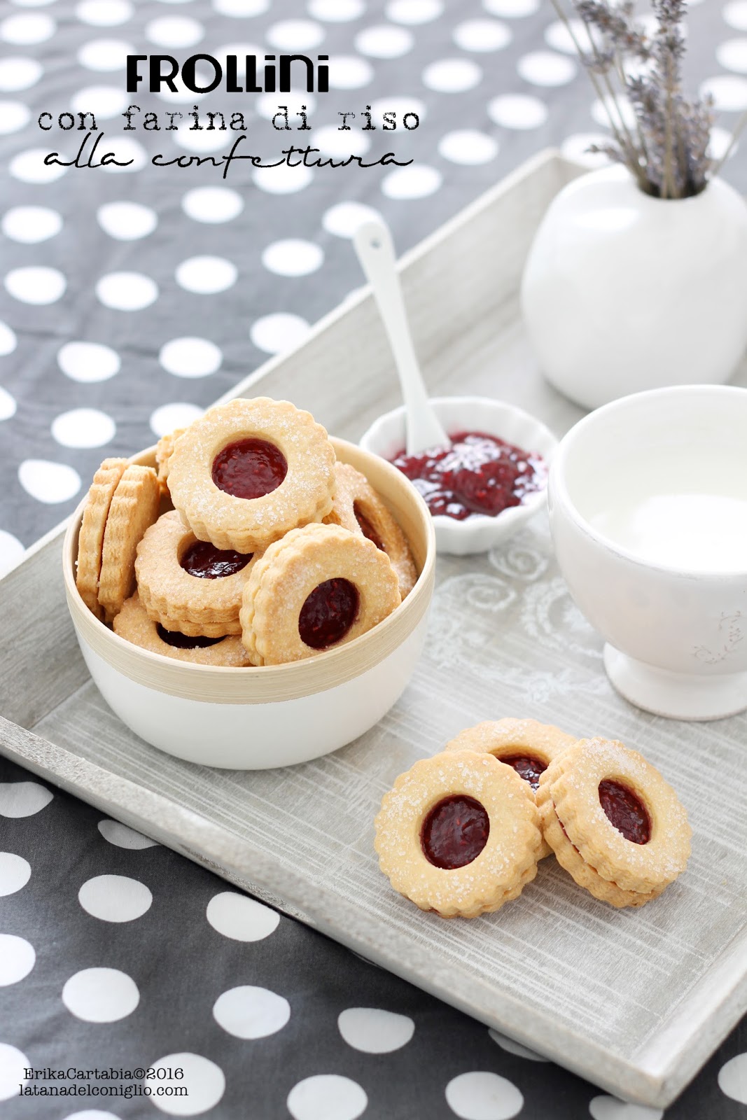 Per renderli ancora più golosi, e perfetti anche per l’ora del tè, ho voluto farcirli con la mia confettura preferita, quella di lamponi, ma potete tranquillamente utilizzare la ricetta di questa friabilissima frolla senza glutine anche per altre ricette. Semplici biscotti per affrontare al meglio la giornata o una golosa crostata. La tenuta e la friabilità dell’impasto sono perfetti e il giorno dopo, questa frolla con farina di riso, farà risultare i vostri dolci ancora più buoni. La ricetta da cui ho preso ispirazione la trovate qui. Non ho fatto grandi variazioni perchè mi sembrava ottima già così, ho semplicemente ridotto un poco lo zucchero.