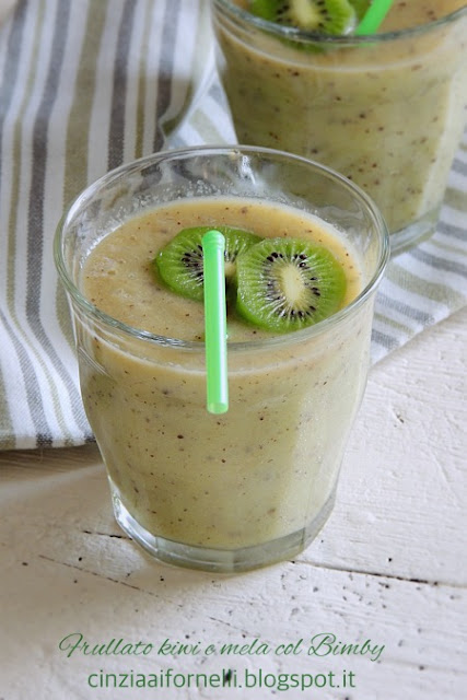 Eccoci con un nuovo appuntamento con la rubrica Light & tasty che vi propone ricette leggere e gustose, non per sostituire il dietologo o il nutrizionista ma semplicemente per proporvi ricette in chiave light. L’ingrediente di quest’oggi è il KIWI, frutto che coltivo ma a cui in realtà sono allergica. Per chi non soffre di questo problema, propongo questo frullato di kiwi e mela preparato con il Bimby naturalmente, per una pausa rigenerate, sana e leggera. I kiwi sono ricchi di vitamina C, ferro, potassio mentre le mele sono povere di zuccheri ma ricche di vitamine.