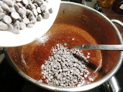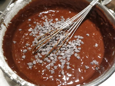 Unire ora 200 gr di gocce di cioccolato, mescolare di nuovo e far raffreddare…