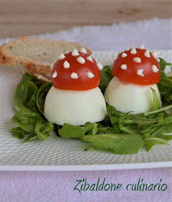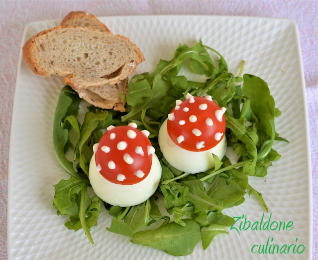 La mia mente è corsa alle mie vacanze in Alto Adige, nel mio Hotel del cuore, dove alla domenica sera vigeva il piatto freddo e assieme a speck e a salumi di ogni genere erano sempre presenti a decorazione del piatto due splendidi funghetti… proprio uguali a quelli che ho preparato per l’occasione.