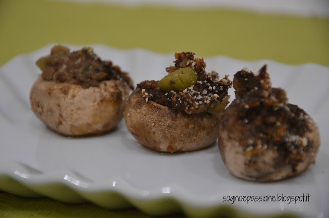 Tra le tante voglie che mi durano solitamente giusto il tempo dell’assaggio questi funghi champignon ripieni.