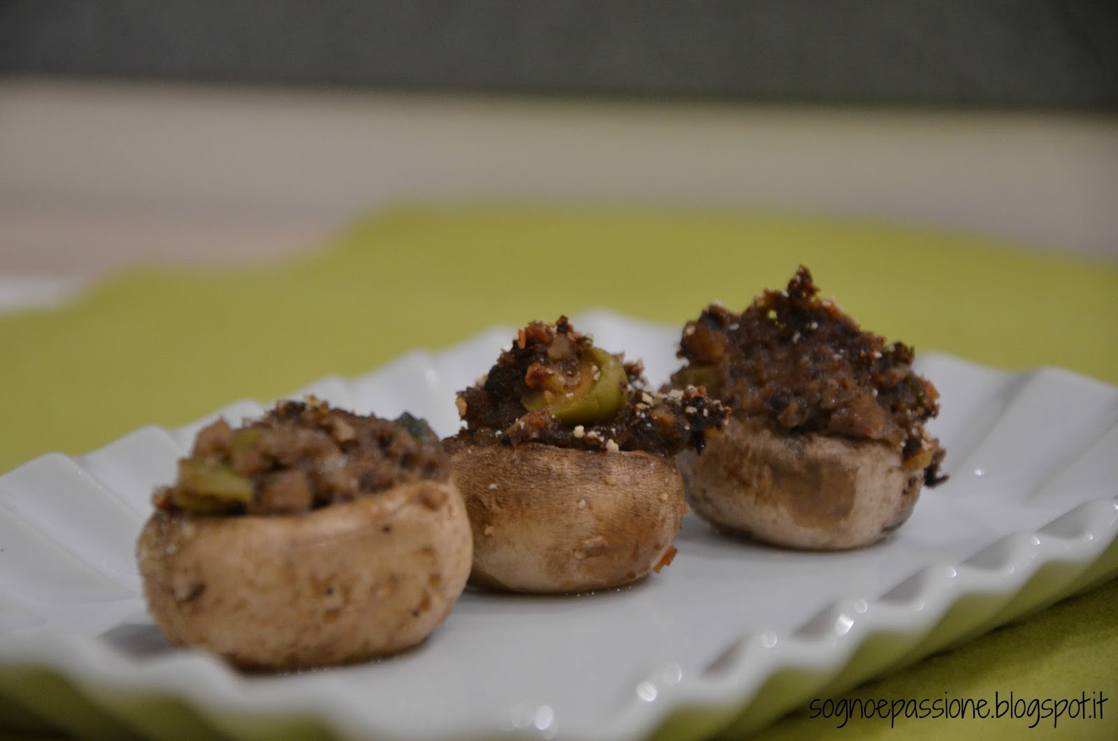 Tra le tante voglie che mi durano solitamente giusto il tempo dell’assaggio questi funghi champignon ripieni.