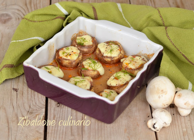 Con l’aiuto di un cucchiaino posizionare la crema nel cappello dei funghi e cuocetr in forno per 5-8 minuti.