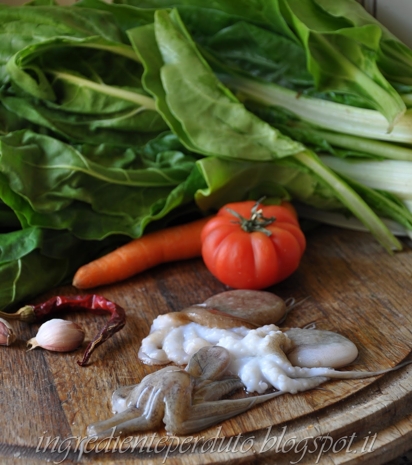Un piatto veramente molto semplice che ancora una volta stupisce per la sua bontà e versatilità; nasce dal baratto tra i contadini e pescatori, i primi provenienti dalle campagne dell’entroterra portavano a vendere il loro raccolto e i pescatori volentieri cedevano i furbi in cambio di verdure fresche, gli abbiti . I polpi cuociono a lungo nel sughetto di pomodoro si sposano con la bietola per andar poi a guarnire, nella bella stagione un crostone di pane e durante l’inverno ad insaporire una fumante polenta.