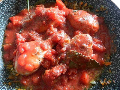 e lasciare cuocere rigirando dolcemente di tanto in tanto. Il piatto sarà pronto quando vediamo che il pomodoro si è rappreso e la forchetta entra dolcemente nella carne di pollo.