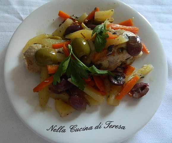 Ricetta FUSI DI POLLO CAROTE PATATE E OLIVE