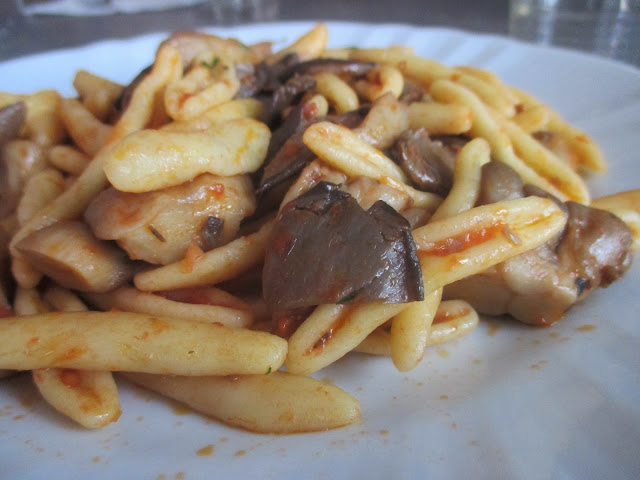 3) Cuocete la pasta in abbondante acqua calda. Scolateli al dente nella padella con il sugo poi aggiungete i funghi. Saltate, fate insaporire poi servite subito.