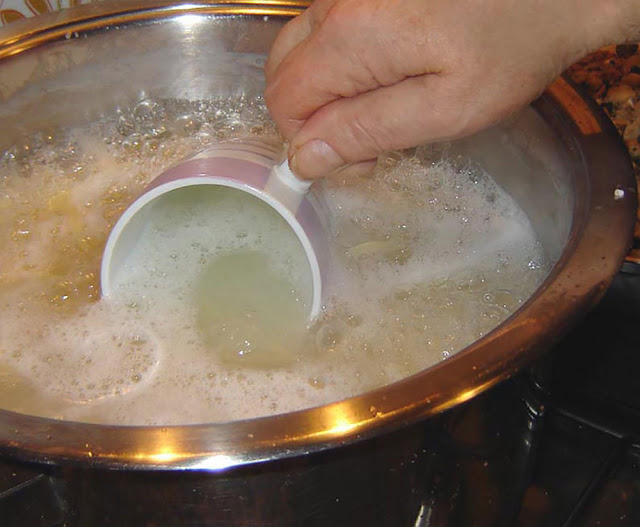 Quando la pasta è al dente, pronta da scolare, prendete una tazza di acqua di cottura e tenetela da parte. In molte ricette italiane si consiglia questa pratica. Questo è un trucco per rendere molti piatti più appetitosi, soprattutto quelli che hanno dei sughi non tanto liquidi: saltare la pasta nel sugo con l’acqua di cottura, quindi con il suo stesso amido, darà alla preparazione un aspetto più lucido e una formerà una specie di cremina golosa, senza aggiungere parti grasse.