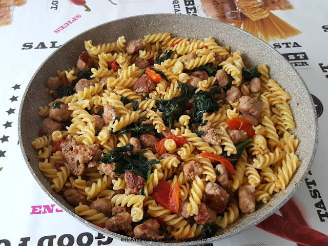 - NB. Se volete mettere del peperoncino fresco, basta aggiungerlo insieme alla salsiccia, io ho dimenticato di metterlo subito e ho messo un pizzico di peperoncino in polvere. Non ho aggiunto nella salsiccia altro sale in quanto era abbastanza salata e andava bene così.