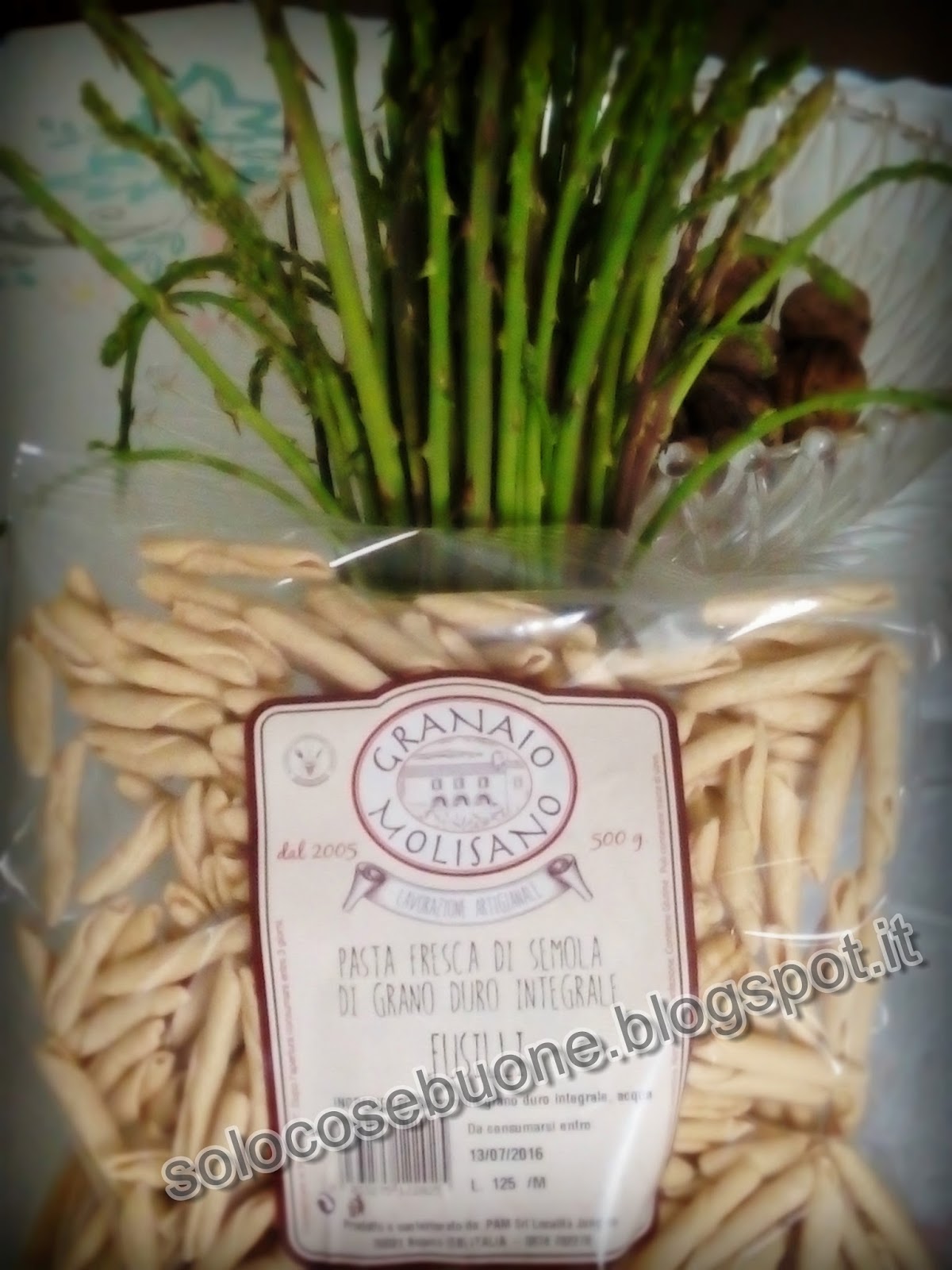 La riuscita di questo piatto prevede l’utilizzo di ottimi prodotti , quale la pasta del Granaio Molisano e gli asparagi selvatici. Ho scelto come formato di pasta i fusilli freschi di semola di grano duro , dal gusto corposo e rustico, ideali per avvolgere la crema di asparagi in un dolce abbraccio.